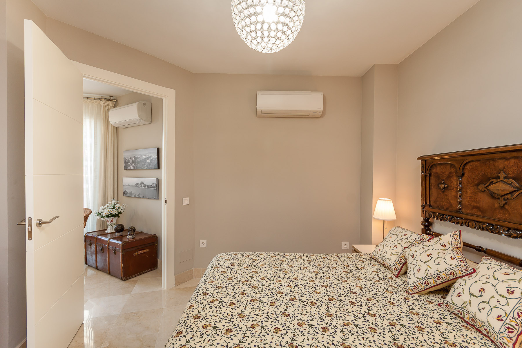 La habitación cuenta con una lujosa cama de matrimonio, garantizando un descanso reparador después de explorar la vibrante ciudad. El apartamento viene completamente climatizado con una bomba de calor, proporcionando comodidad en cualquier temporada. El WiFi de alta velocidad te mantiene conectado durante toda tu estancia.